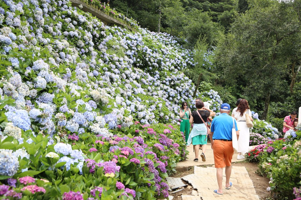 好的,第二天天氣很好,吃過早餐之後我們就抵達了萬里的繡球花園~~真的很大!超讚!賣東西的老闆很風趣又親切,先講對繡球花園的感想,因為這個8000坪的場地真的很~~~大,加上又是禮拜一,雖然人潮不少但是基本上很適合取景不會隨便拍到人,可惜的事前幾天有下雨,所以地上有些地方有泥,比較高的繡球花底要不是高低不一,要不就是底部有泥,構圖有困難,所以沒多久我就把腳架收起來了。(嗚嗚嗚~~不然我真的很想拍高繡球花)