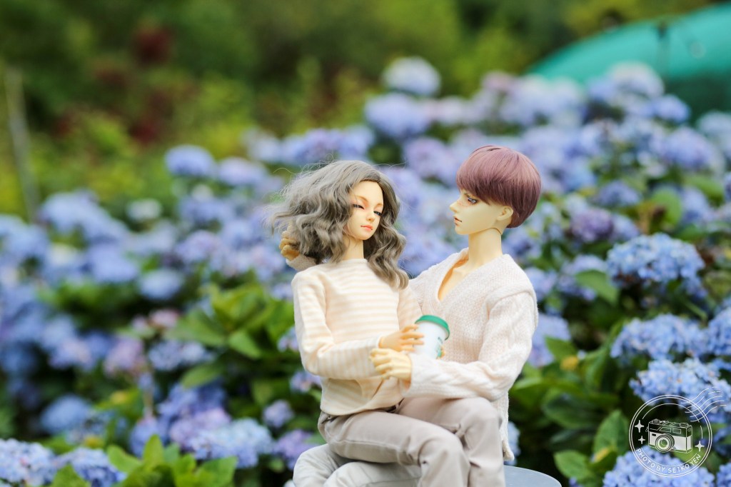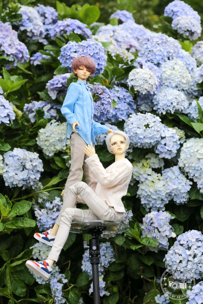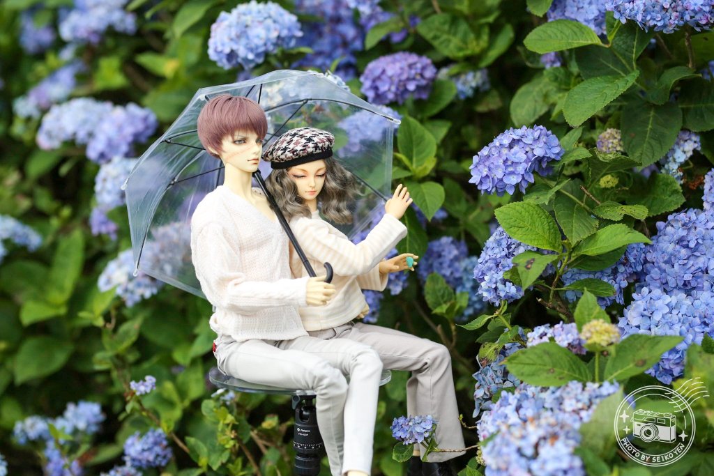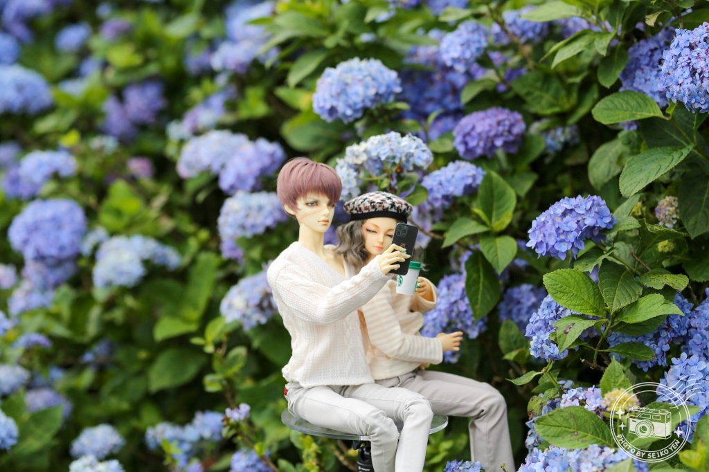 這次給自己的功課是,在繡球花前用情侶耳機,手機等道具。