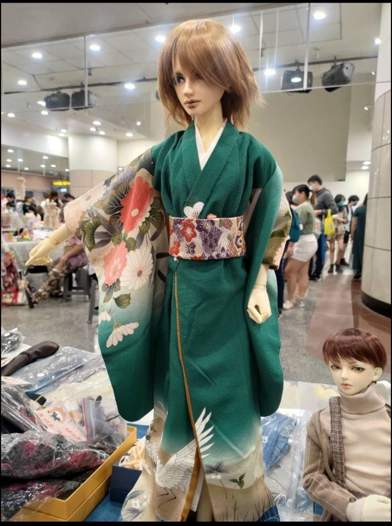 好,回來坐了一陣子,內心還是沒放下剛剛那兩套和服,又跑去攤位前面逛啊逛的,就像站在我攤位前面的時候,其他攤主會幫忙推坑,所以我站在和服攤主前面,連奶茶也幫忙指點迷津,一聽到原價幾百美金,不用跑去紐約就有人幫你帶回來,花色又這麼美,SD13可以穿,現在兩件還打折給你!
