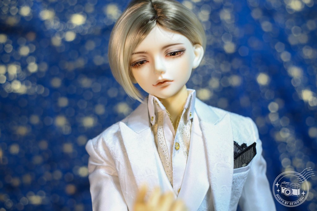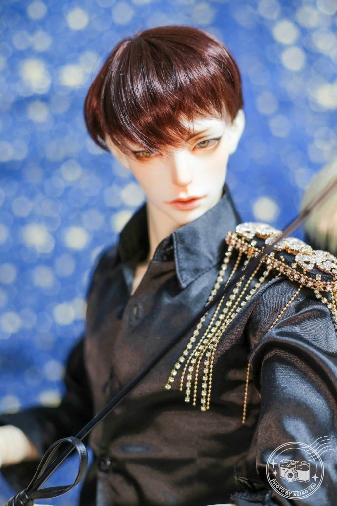 今天拍照的時候基本上是晚上八九點,本來想說就套上西裝看看,套上了之後覺得還不錯看就臨時拉了布幕,抓了立架跟燈來試拍。因為他們就站在我的娃櫃上,所以所有櫃子的東西都沒辦拿,臨時抓了上次威廉用的馬鞭,還以黑尾上次用的肩飾來給他點動作