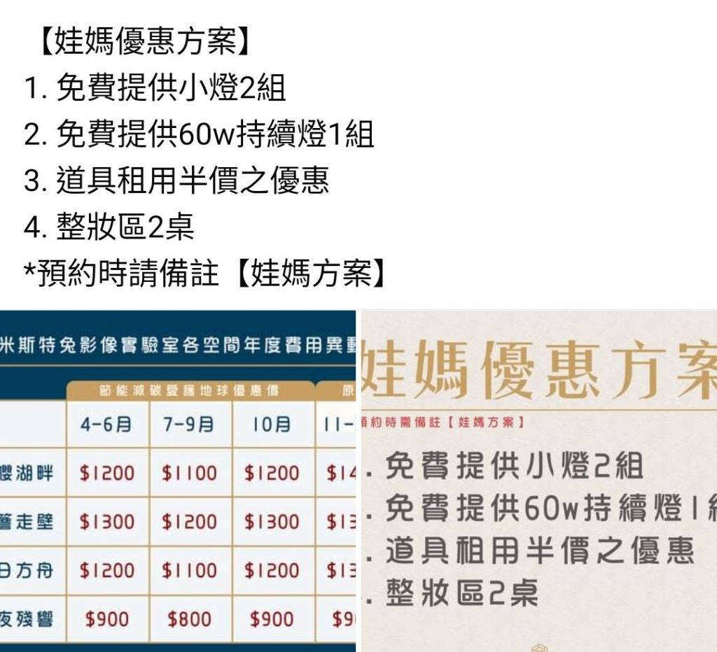 是的,普通時候那些棚拍時轉來轉去的燈,都是兔子友情支援,但是娃媽方案除了有比較大的整裝區,也有提供燈具的服務,運氣好的話還能請兔子指點一二。