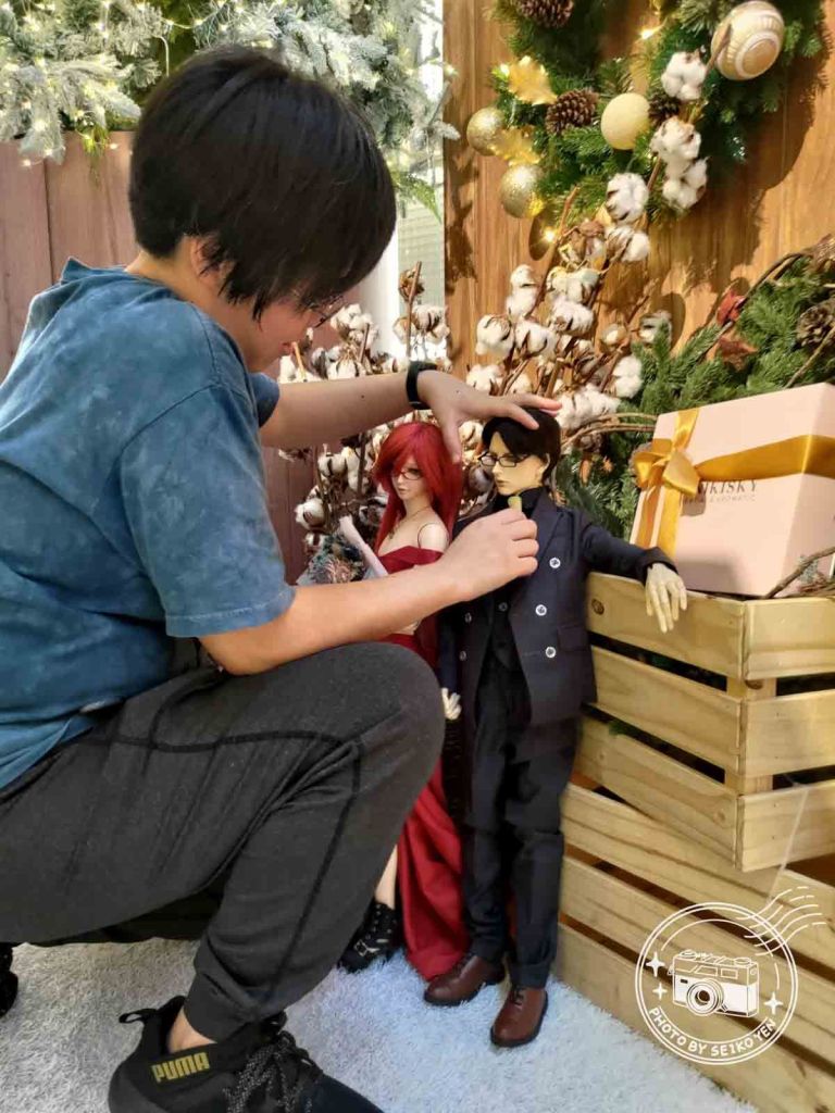自從威廉兩次戰損之後,就一直呈現禁足的模式,因為12月好不容易排到一天休,想說趁貓貓上班前看看有沒有機會來拍一下威克,早上貓貓就來我家提貨,我們邊逃避現實邊給威克選衣服,考慮到要去101,最後用敲敲的紅色禮服跟威廉的歌吉拉西裝搭配約會。